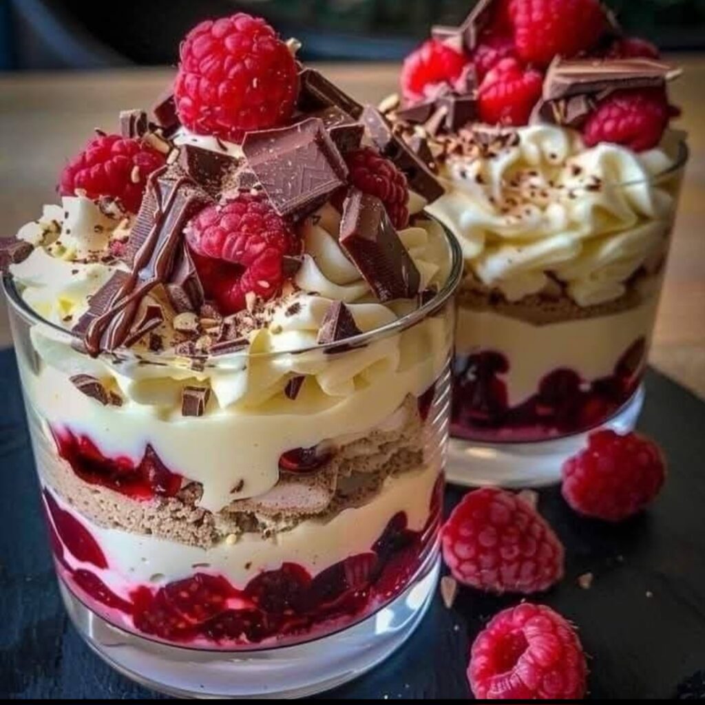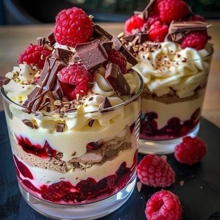 Piškote na brzaka uvaljajte u to i redjajte u čašice na beli fil što lomite na sitne komadiće i tako dok ne potrošite sav materijal.Stavite u frižider bar na 2 sata da se dobro ohladi.