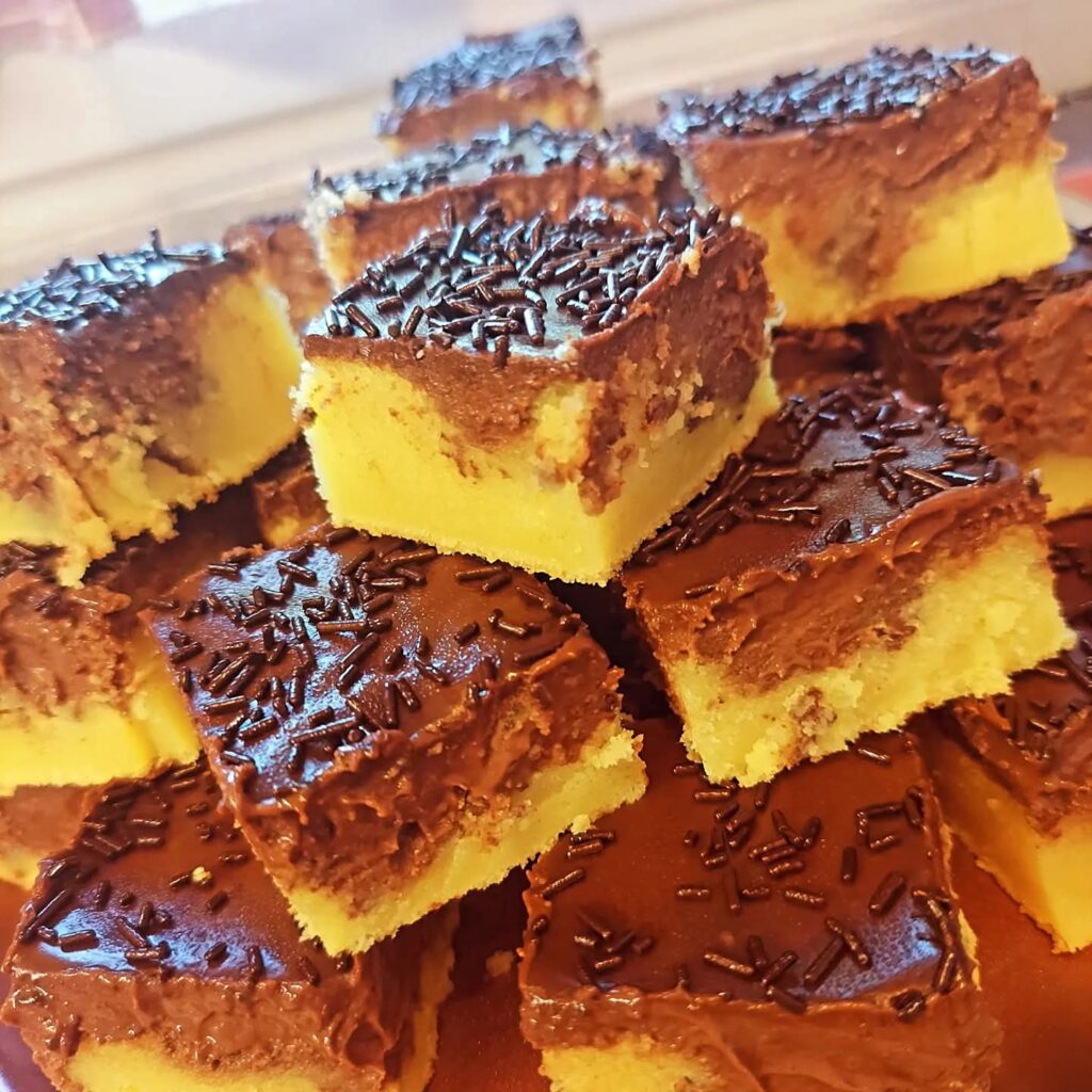 Ubacite jaja u mikser i miksajte dok jaja ne postanu penasta i kremasta,oko 10 min, pa dodajte šećer i miksajte ali sad već lagano. Na kraju lagano umešajte brašno sa praškom za pecivo, vanilin šećerom i ulje zatim mleko i miksajte lagano minut-dva.Pripremljenu smesu sipajte u papirom za pečenje postavljen pravougaoni pleh (moj je 25x 30cm), pa pecite u rerni zagrejanoj na 180°C oko 30-35  minuta.Izvadite pleh iz rerne, te biskvit prebacite na rešetku da se ohladi. Izbušite rupe na oko 1,5cm jedne do druge i prelijte fil preko biskvita.