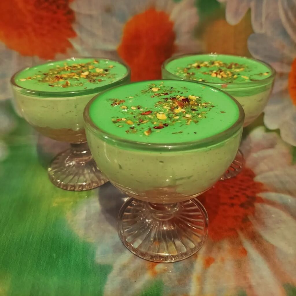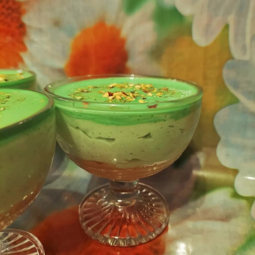 Pomešajte ručno maslac i mlevenu plazmu, mlevene pistaće zatim dodajte sok od narandže. Pošto će smesa biti prilično mekana slobodno je prstima utisnite u čašice. Stavite u frižider da očvrsne keks dok vi pravite fil.